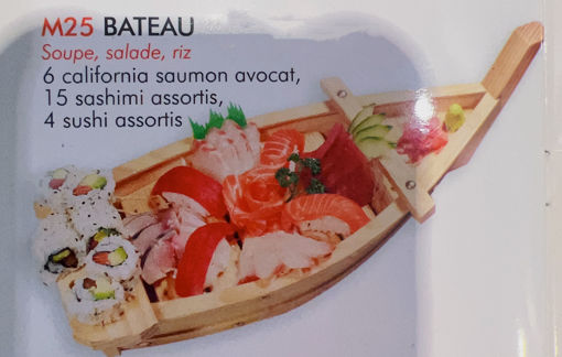 Soupe, salade, riz, 6 california saumon avocat, 4 sushi , 12 sashimi assortis